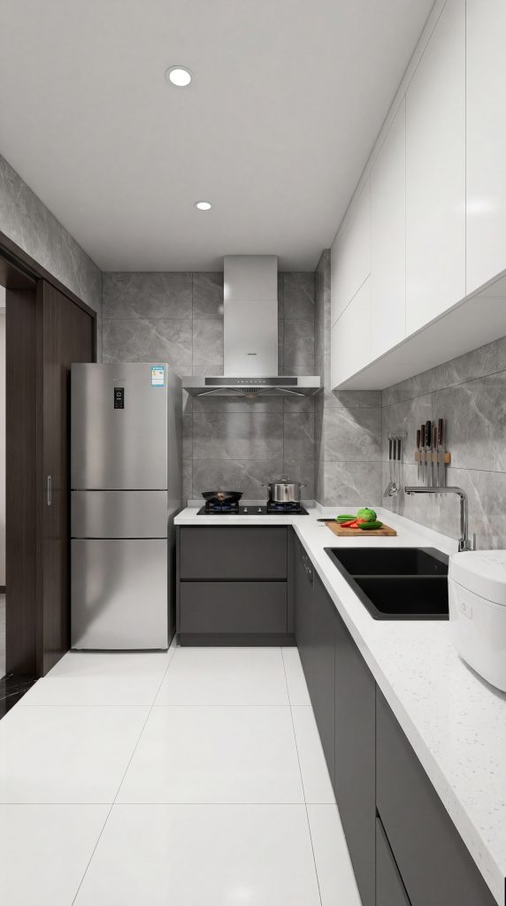 - 主材提供:瓷砖、定制橱柜、石英石台面、水槽、水龙头、集成吊顶